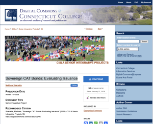 In the last 25 years, sovereign catastrophe (CAT) bonds have surfaced as a new way of disaster risk financing for governments. This paper examines the evolution, structure, and effectiveness of sovereign CAT bonds as tools for disaster risk financing. Drawing on existing academic literature, institutional reports, and case studies of Mexico and Jamaica, the paper surveys the structure, performance, and institutional sustainability of sovereign CAT bonds. In addition to qualitative analysis, the study introduces a simple rating framework to assess the instruments effectiveness across four dimensions: speed and certainty of payout, tail risk coverage, political and institutional sustainability, and adequacy relative to national disaster risk. The analysis provides insight into the potential role and limitations of sovereign CAT bond usage within a nation’s disaster risk financing strategy.